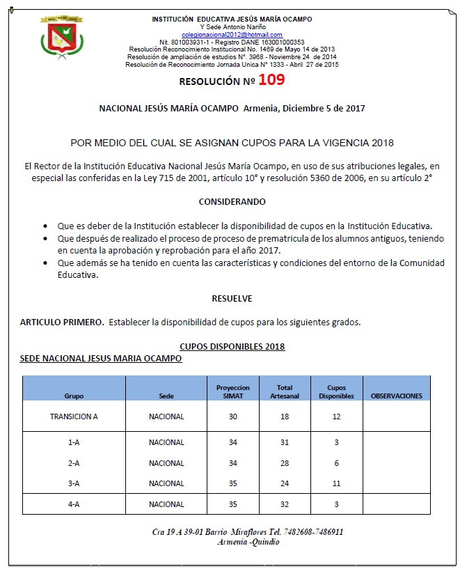 RESOLUCION 109 Published 09/05/2018 at 671 × 827 in Informes y Resoluciones ← Previous Next → Total Page Visits: 1130 - Today Page Visits: 1